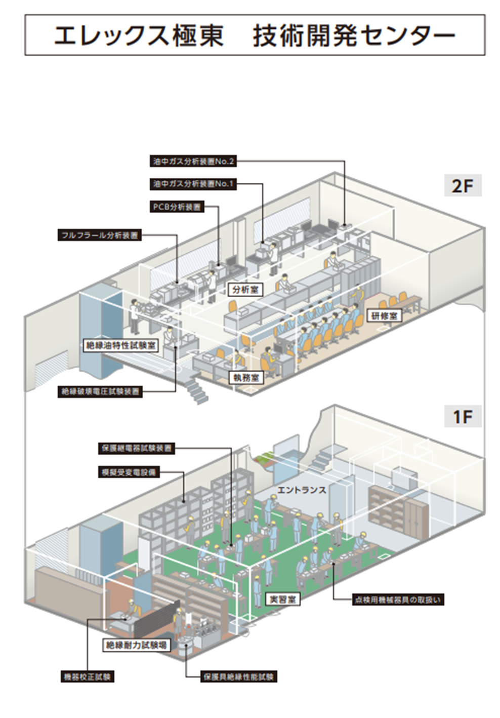 練習用の保護継電器や高圧ケーブルも敷設してあり、保護継電器試験や高圧ケーブルの絶縁診断において、