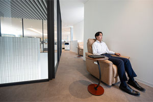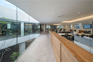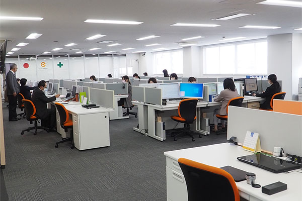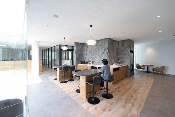 カフェスペースやフリースペースもあり、リラックスしてコミュニケーション図ることもでき、仕事の効率アップと社員の健康管理の向上を目指しています。