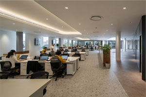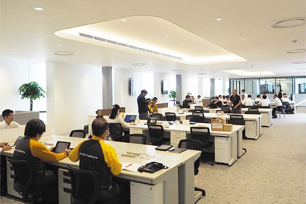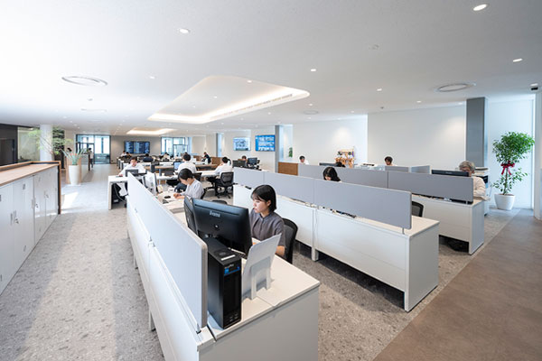 新社屋のオフィス空間は、ワンフロアオフィスになっており、社員同士でコミュニケーションが取りやすい設計になっています。